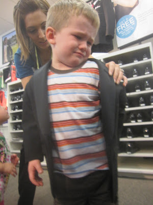 I am the ring thrower in Uncle Po and Kelly's upcoming wedding.... The date is getting close, so we had to go get measured for our tuxedos. This WAS NOT my idea of fun by any means. But, with a lot of bribery, I finally cooperated.... My parents are hoping that I am getting all of my objecting out of my system before the big day..... hmmm... maybe I'm just getting warmed up!